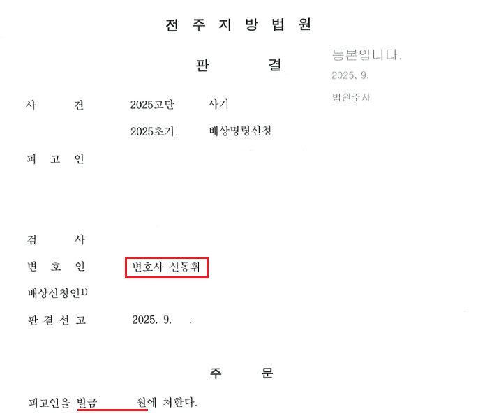 * 담당변호사 : 신동휘 변호사