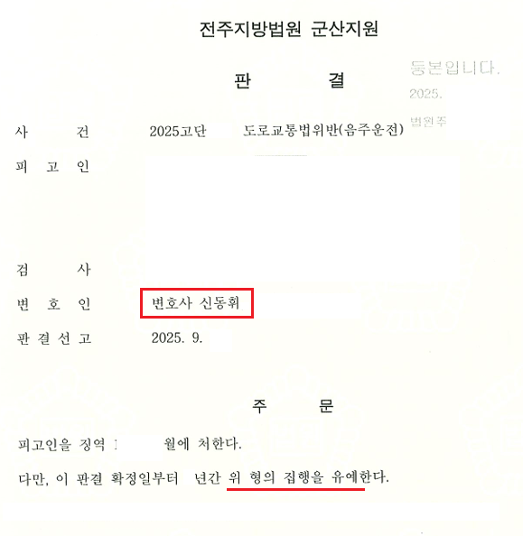 [] 도로교통법위반(음주운전) / 징역형의 집행유예