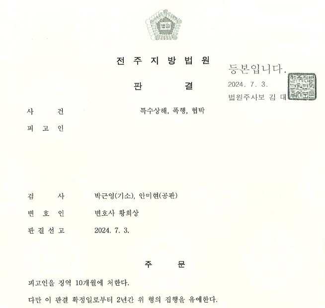 특수상해, 폭행, 협박 사건 진행경과 집행유예 받은 소식을 전해드립니다.