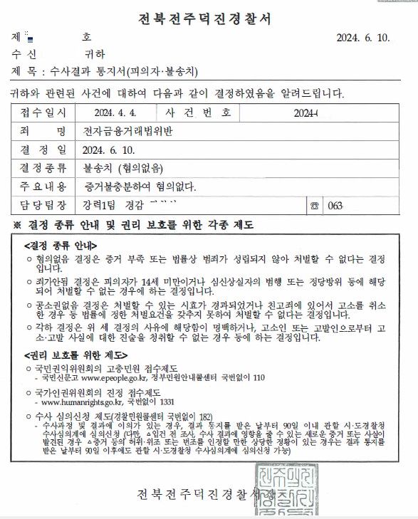 [] 전자금융거래법위반(계좌양도,대여) / 무혐의