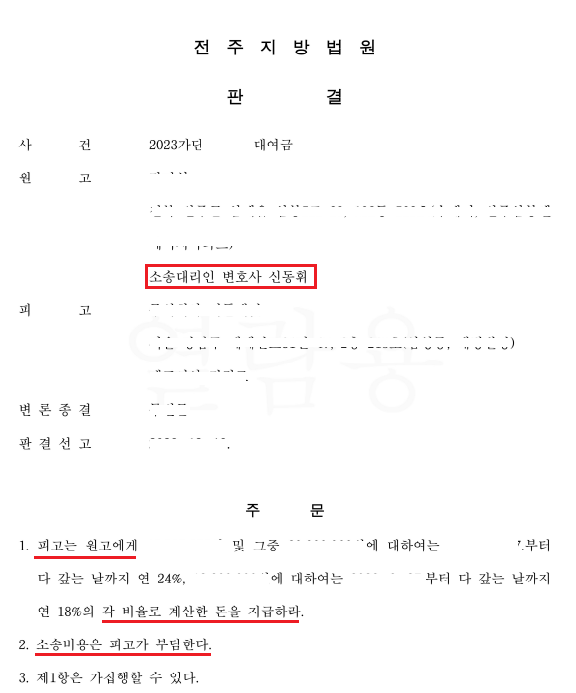 대여금, 투자금 사건 진행경과 전부승소한 소식을 전해드립니다. * 담당변호사 : 신동휘 변호사