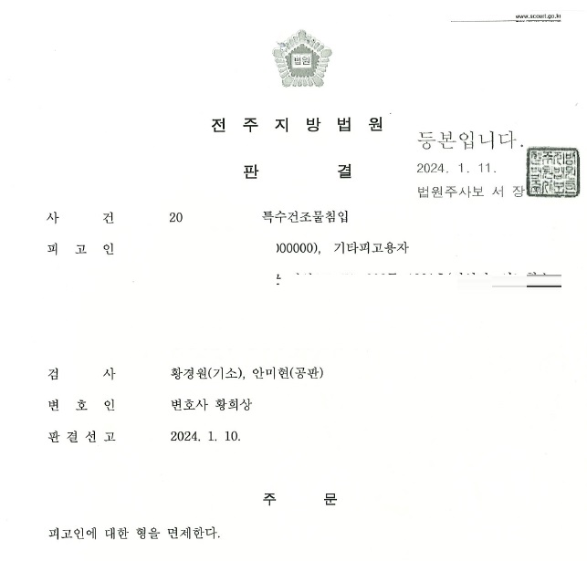 특수건조물침입 사건 진행경과 형을 면제받은 소식을 전해드립니다.