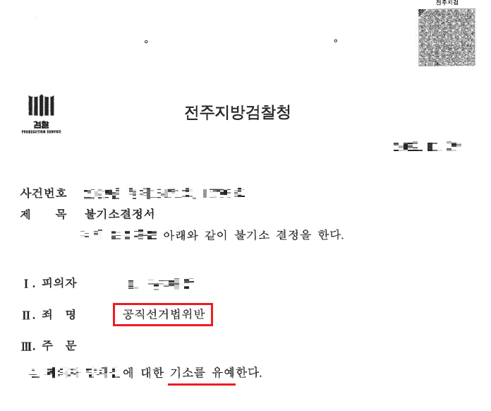 [] 공직선거법위반 / 기소유예