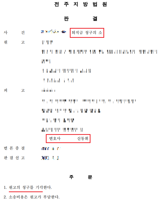 퇴직금 사건 진행경과 승소한 소식을 소개해드립니다. * 담당변호사 : 신동휘 변호사