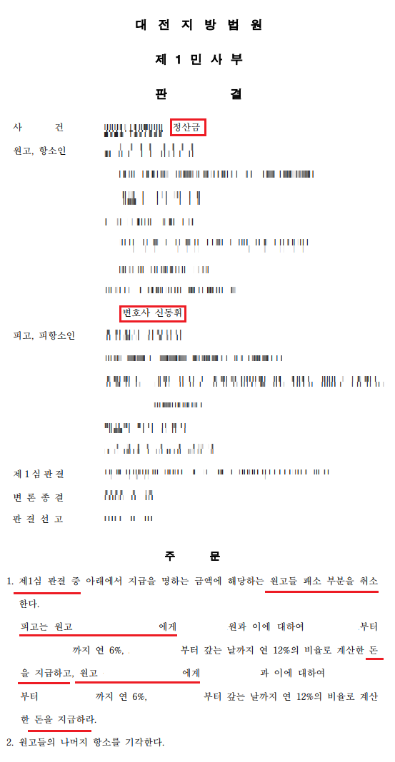 정산금 사건 진행경과 항소심에서 승소한 소식을 소개해드립니다. * 담당변호사 : 신동휘 변호사
