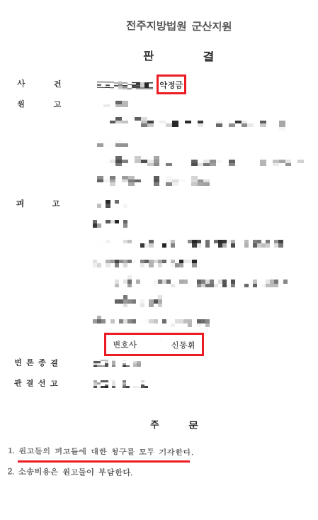 약정금 사건 진행경과 승소한 소식을 소개해드립니다. * 담당변호사 : 신동휘 변호사