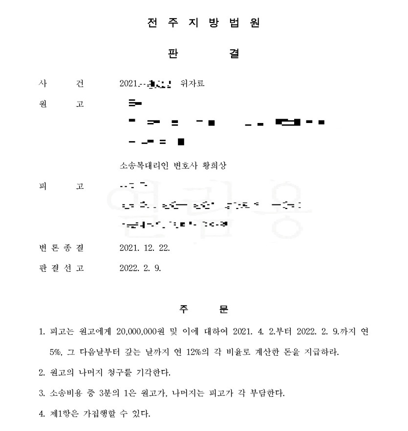 [] 상간,부정행위 위자료 / 승소